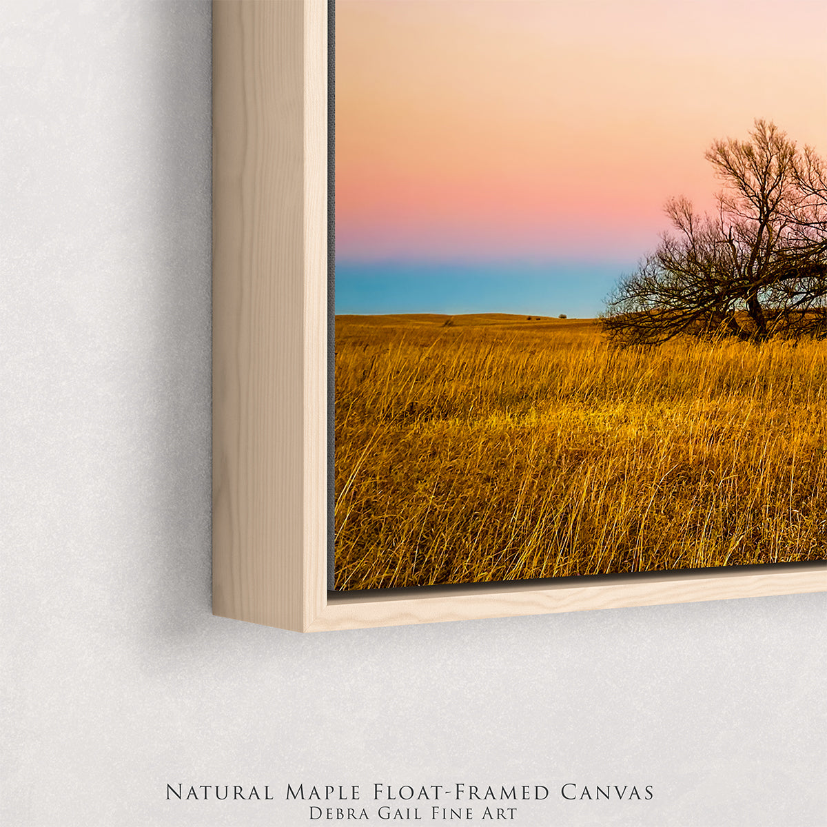 Float-framed canvas pieces are offered in a carefully selected Natural Maple, Black, or Brown finish. These options are chosen to provide clean, modern contrast while allowing the artwork to remain the focal point. If you’re unsure which frame best suits your space, I’m happy to help guide your selection.
