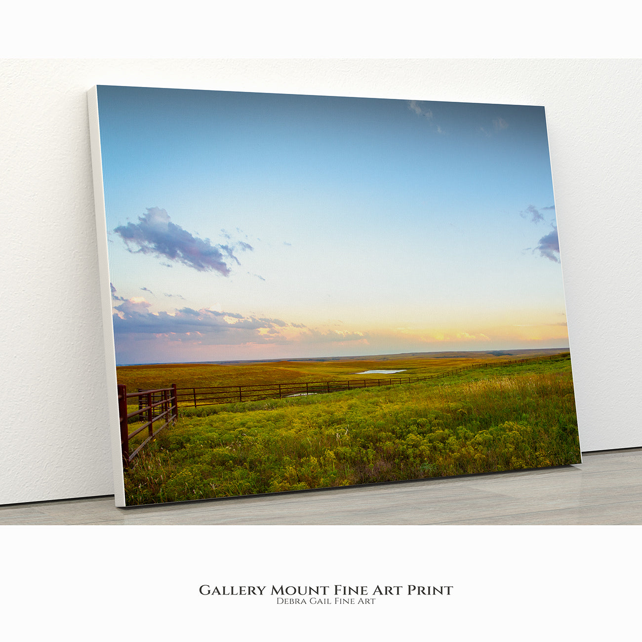 Kansas Flint Hills Wall Art brings the tranquil beauty of rural Kansas directly into your home with this stunning sunset prairie canvas print. This large canvas print captures a wide open prairie scene at sunset, showcasing the rustic charm of the Flint Hills landscape. Perfect for adding peaceful sunset art and nature-inspired artwork to your farmhouse or Western home decor, this Kansas landscape print transforms any room with authentic country style wall art.