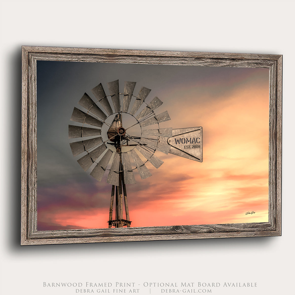 This FAMILY CANVAS - PERSONALIZED WINDMILL ART offers a stunning way to showcase your unique style with personalized windmill art that features your family name, ranch name, or any custom text on the windmill tail. Perfect for enhancing your home with farmhouse wall decor, this horizontal canvas print captures the essence of the Great Plains with original photography by Debra Gail Fine Art.
