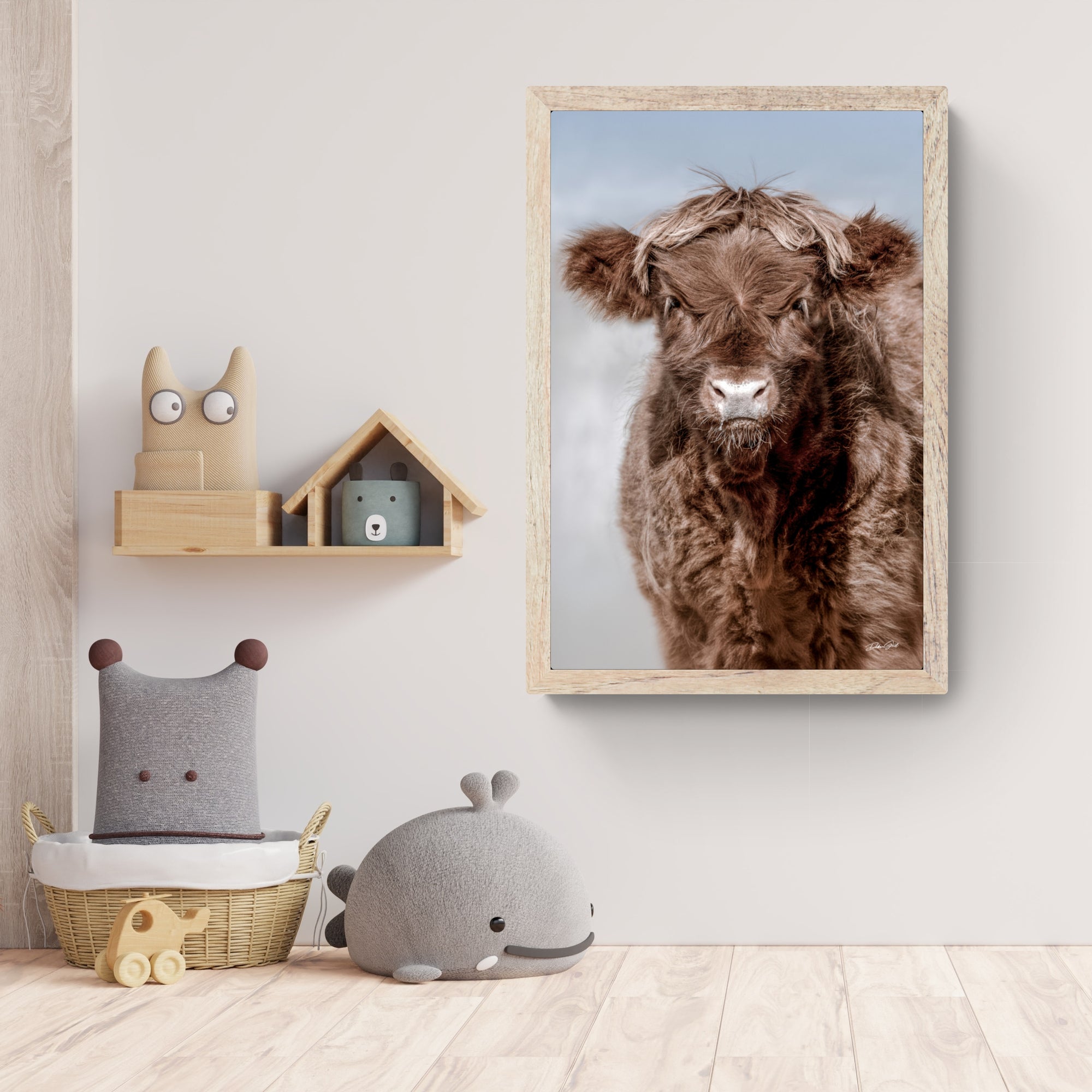 Say hello to this sweet Highland Cow Calf Print! I captured the charm of this Highland Cow Calf in Colorado. My Highland Cow Wall Art collection offers a variety of styles, including western, minimalist fall and summer, outdoor metal art, and modern and contemporary. This rustic fine art print would make a delightful addition to your bathroom or office or a thoughtful wedding gift.