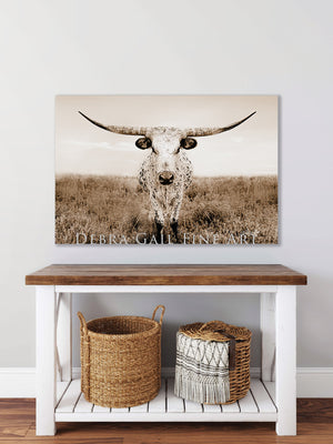 Discover the powerful spirit of the West with our Texas Longhorn Wall Art Prints and Canvases, perfect for decorating a western ranch home, a cozy farmhouse, or a modern space with rustic roots. Debra Gail’s longhorn wall art makes a powerful impression. These fine art prints showcase the beauty and spirit of Texas longhorns with warm tones, thoughtful composition, and timeless character.