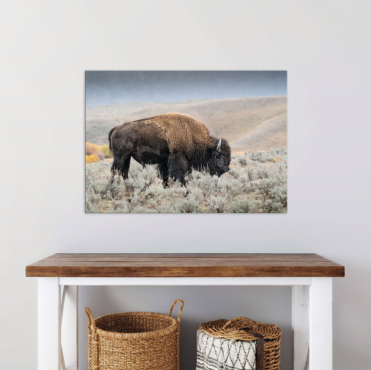 American Bison Wall Art – Yellowstone Landscape Print – Rustic Western Decor