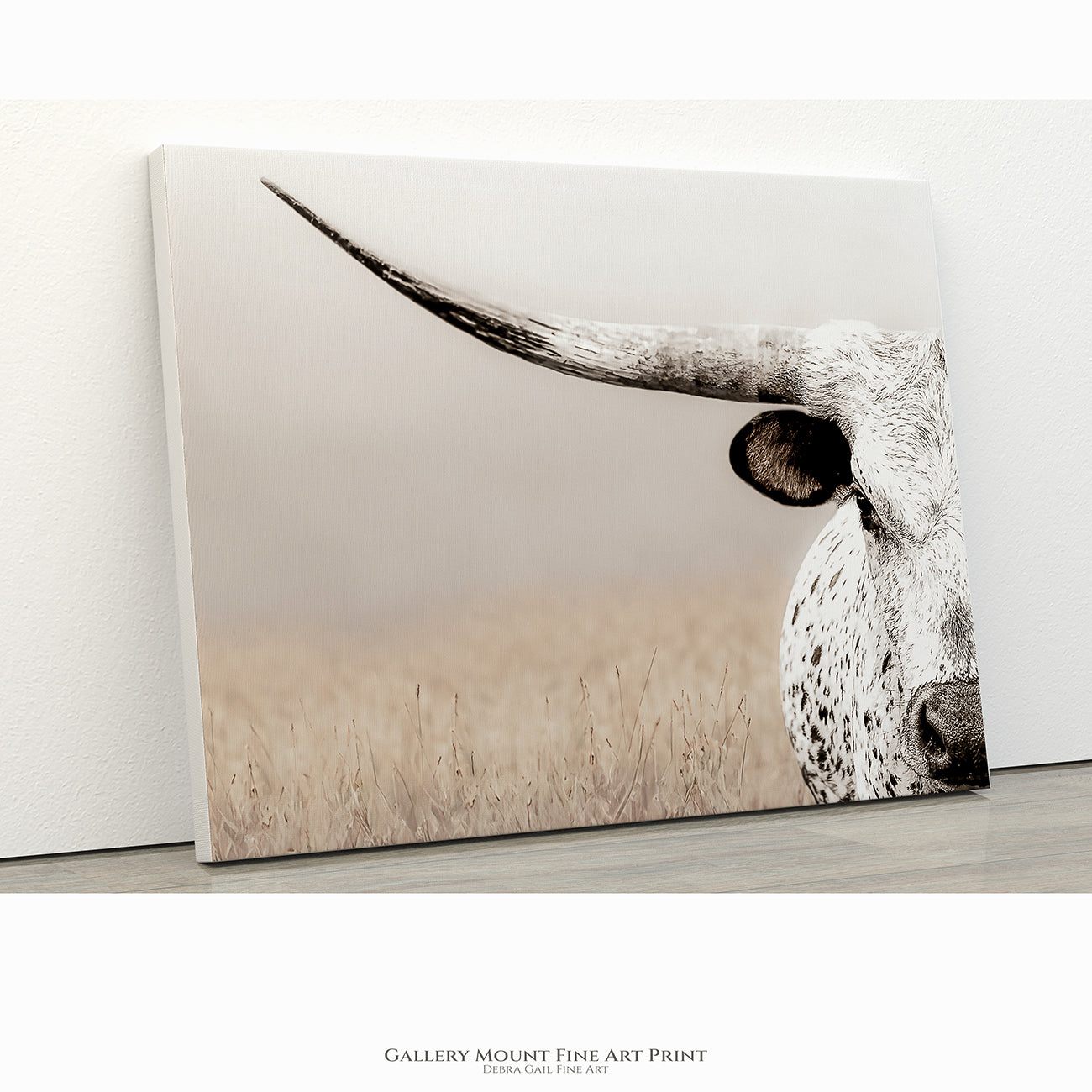 This Texas Longhorn canvas print captures the striking close-up of a majestic longhorn, bringing authentic western ranch life into your home. Perfect for lovers of rustic farmhouse decor, this large cattle canvas features museum-quality detail that highlights the rugged beauty and heritage of Texas ranching. Crafted by Debra Gail Fine Art, this extra large cow print delivers a bold statement in any farmhouse wall decor or western restaurant art setting.