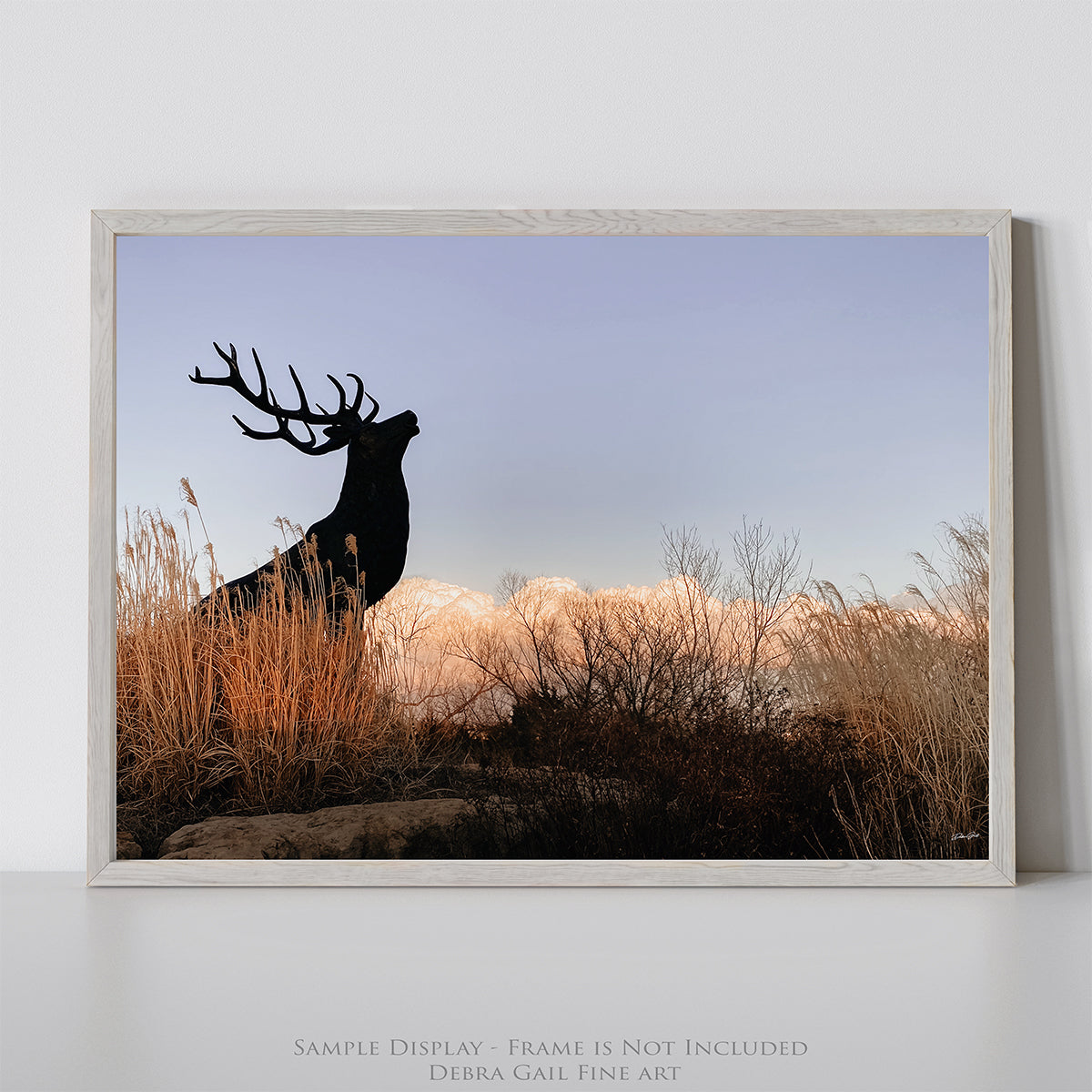 Add a powerful yet serene focal point to your space with this stunning elk portrait. Captured with an eye for minimalist composition and natural grace, this piece defines the Western Luxe aesthetic.